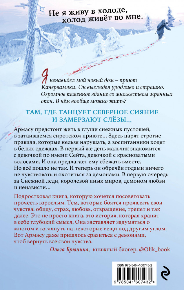 Nordic Horror. Леденяще холоденВ данный момент этот товар отсутствует в продаже. Возможно, у нас найдется аналогичный или похожий товар здесь. Серия: Nordic Horror Армасу предстоит жить в глуши снежных пустошей, в затаившемся сиротском приюте. Девочка с красноватыми волосами предлагает ему сбежать, но всё идёт не по плану, и теперь Армас обречён годами ничего не чувствовать и охотиться на демонов. В первую очередь, за Снежной леди, королевой иных миров, демоном любви и ненависти. Сможет ли Армас вернуть свои чувства? И какой ценой?.. |