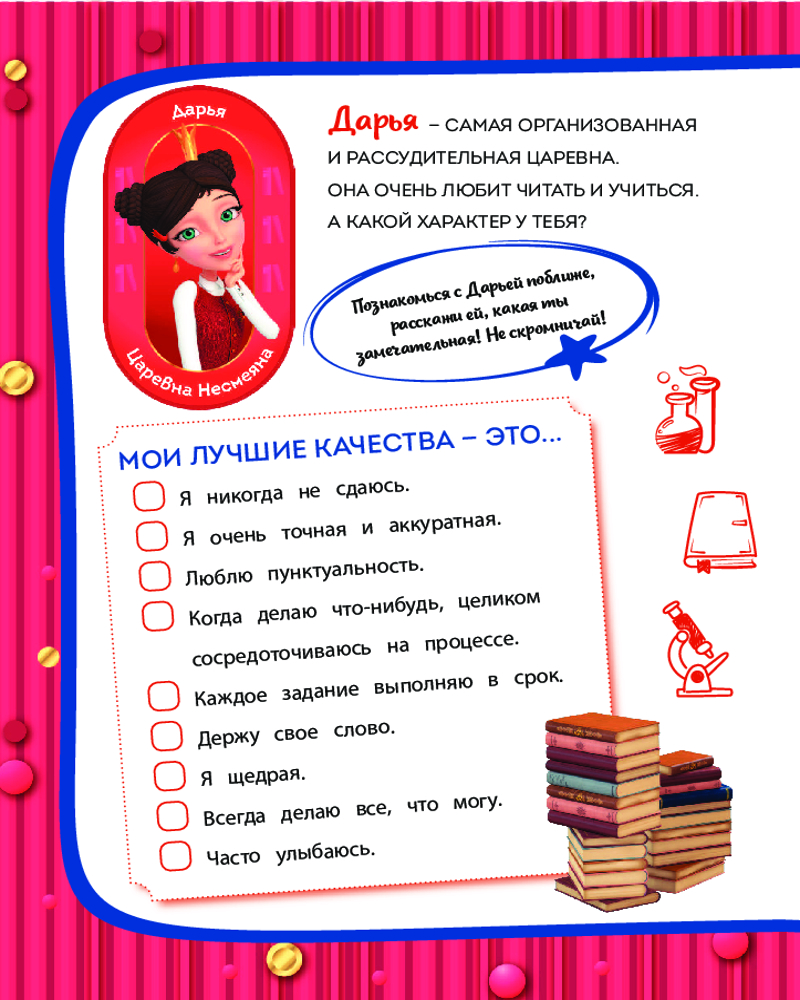 💳 Оплатить за товар можно при получении 🇰🇿 Есть бесплатная доставка по Казахстану от 1 дня 🎁 Копите бонусы с каждой покупки Серия: Царевны. Книги по фильмам Яркий дневничок для юных волшебниц! Анкеты для друзей, раскраски, игры, планеры и множество интересных активностей для всех, кто верит в волшебство! |