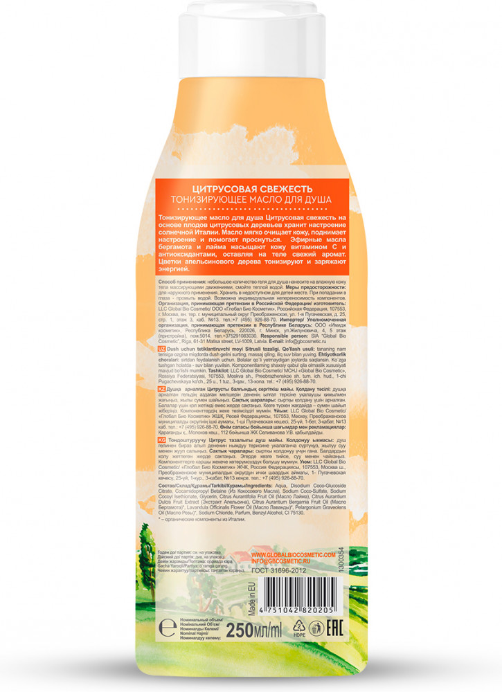 Global Bio Cosmetic Масло для душа тонизирующее «Цитрусовая свежесть»