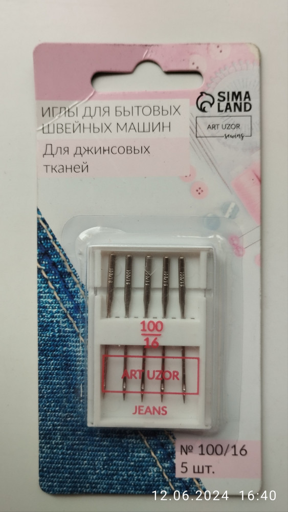 Арт Узор Набор игл одинарных №100/16+24 упаковка содержимое запечатано