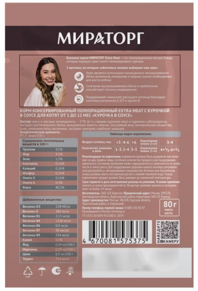 Мираторг Корм для котят с курочкой в соусе «Extra meat»