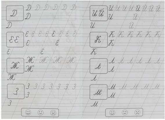 Тетради серии «Классические прописи» полностью соответствуют требованиям по формированию у ребёнка навыков правильного красивого почерка. В неё входит 12 брошюр, содержащих комплекс заданий для развития графомоторики. В прописях предусмотрена система оценки результатов: можно предложить ребёнку самостоятельно обвести соответствующий смайлик: улыбающийся — задание выполнено аккуратно и верно, нейтральный — есть помарки, грустный — нужно ещё потренироваться. |