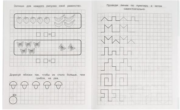 Рабочая тетрадь дошкольника «М. А. Жукова. Прописи, 6-7 лет. Математика в квадратиках» ТМ «УМка» — настоящий тренажёр красивого почерка: |