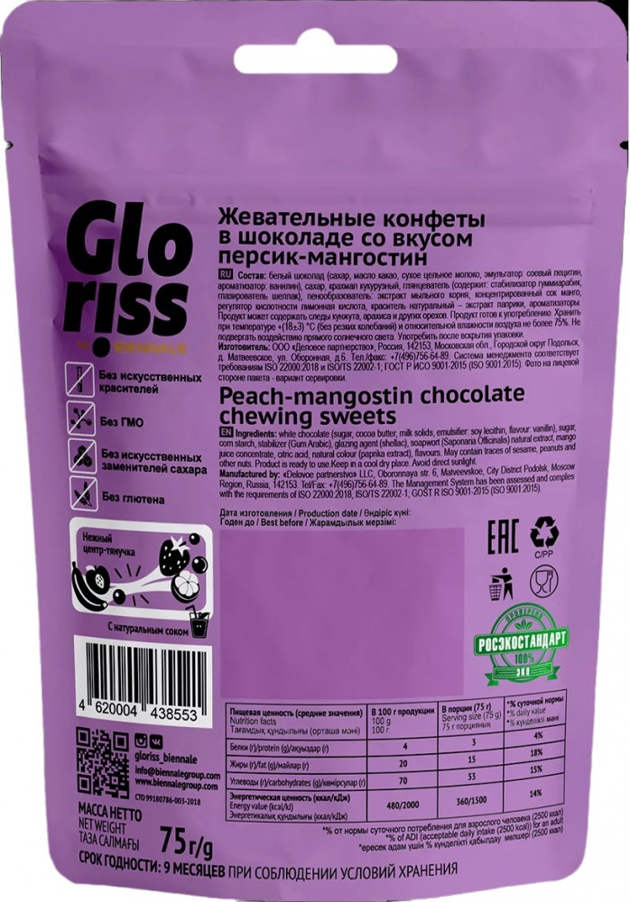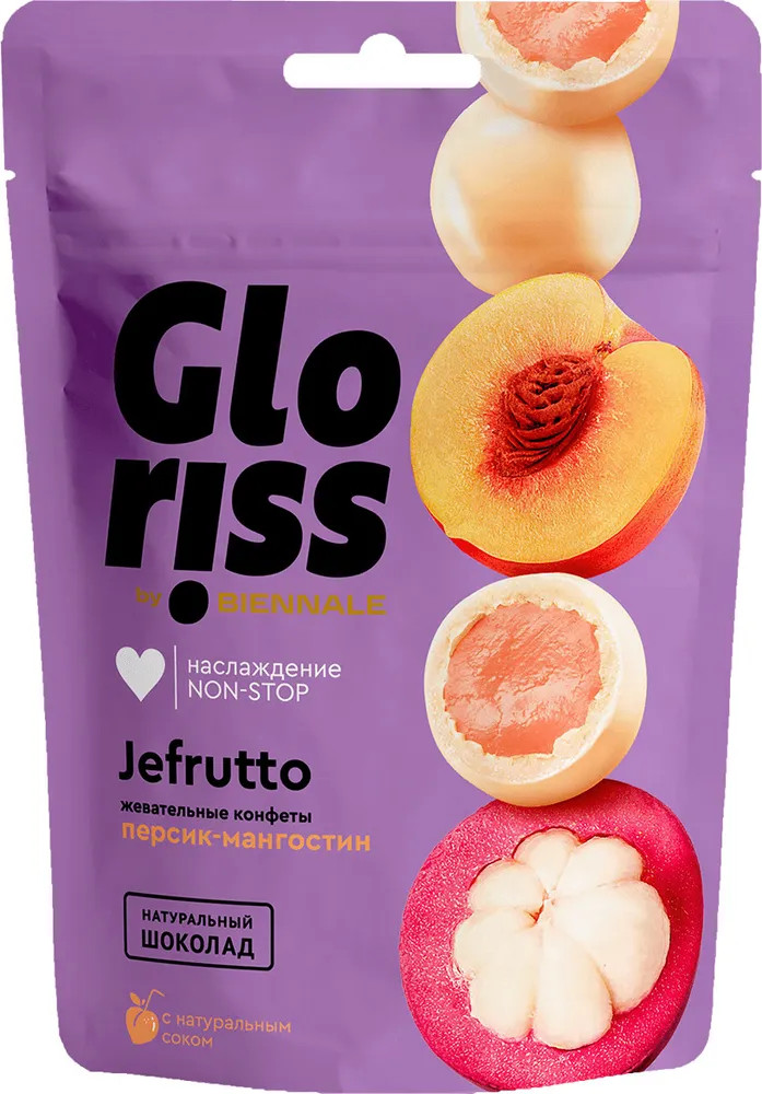 Gloriss by Biennale Конфеты жевательные в шоколаде со вкусом персика и мангостина «Jefrutto»