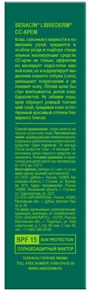 Librederm СС-крем для лицаВ данный момент этот товар отсутствует в продаже. Возможно, у нас найдется аналогичный или похожий товар здесь. Серия: Seracin Кожа, склонная к жирности и появлению угрей, нуждается в особом уходе и подборе специальных маскирующих средств. CC-крем — универсальное средство, позволяющее не только эффективно замаскировать недостатки жирной кожи лица, но и на клеточном уровне скорректировать выделение кожного себума (сала), уменьшить покраснения и увлажнить кожу, когда она особенно в этом нуждается. Лёгкий, неощущаемый на коже крем быстро впитывается, делая кожу бархатистой. Особенные пигменты не забивают поры, а образуют ровный тончайший слой, придавая коже естественный красивый оттенок без жирного блеска. |