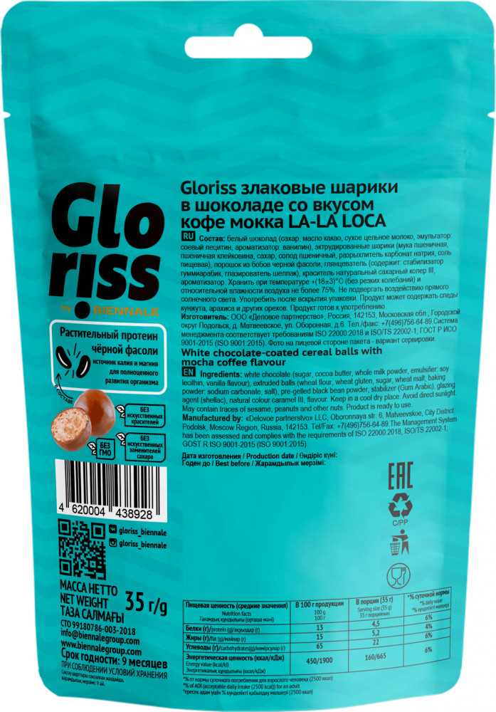 Gloriss by Biennale Шарики злаковые в шоколаде со вкусом кофе мокка «La-La Loca»