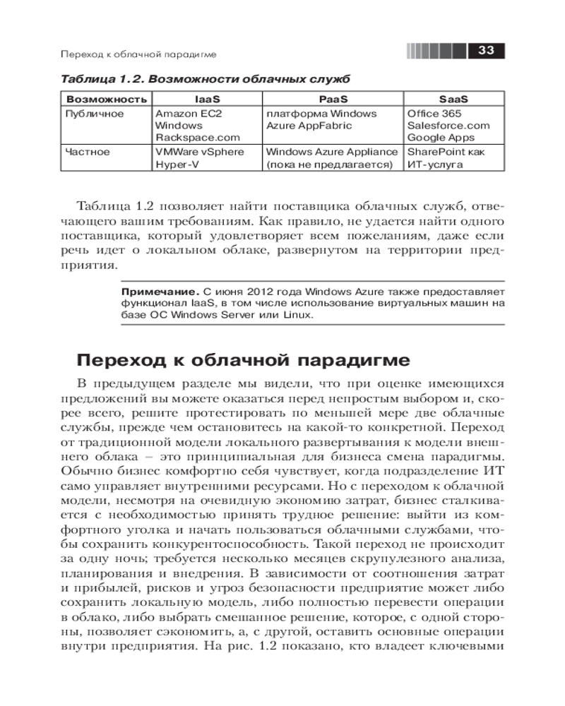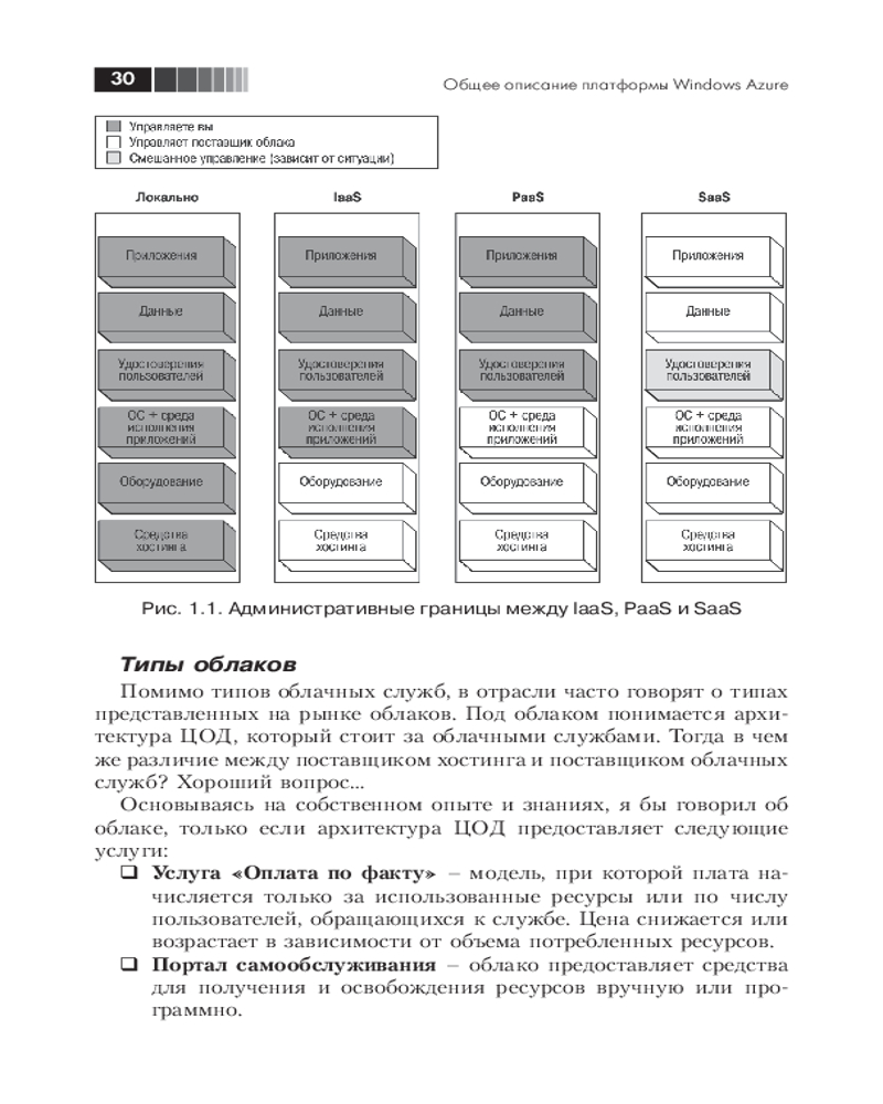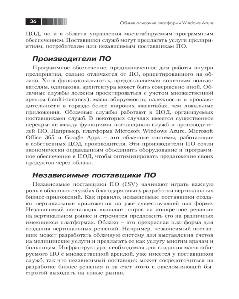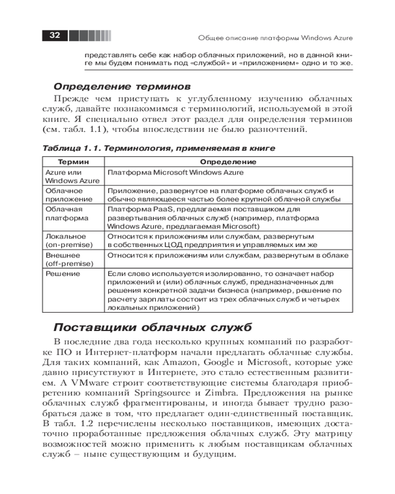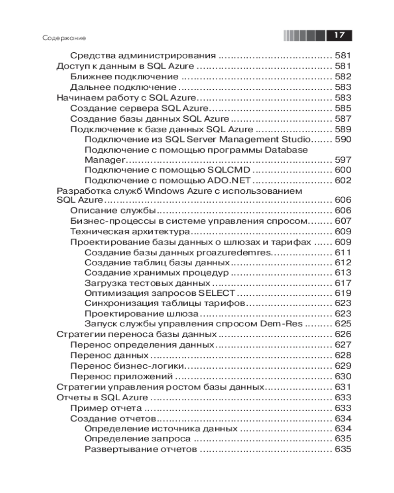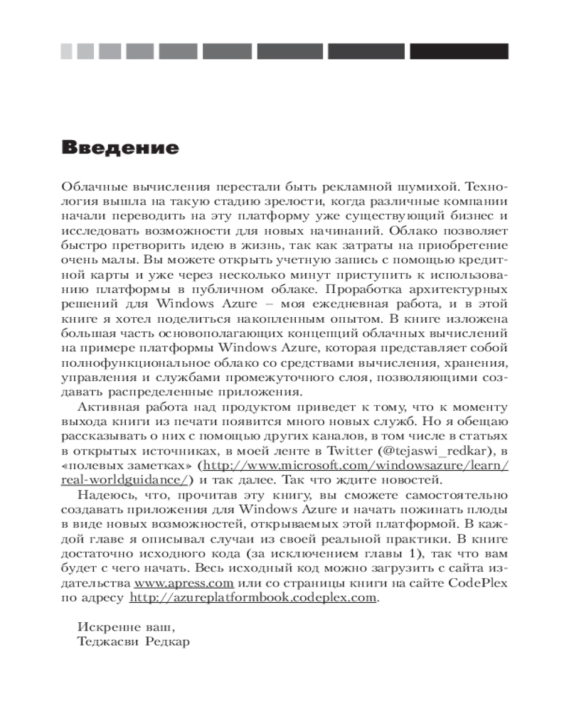 Платформа состоит из трех основных частей: собственно Windows Azure, Windows Azure AppFabric и SQL Azure. В этой книге на конкретных примерах показано, как использовать различные компоненты, по отдельности или вместе. Демонстрируются рекомендованные приемы интеграции этих технологий с существующими системами.