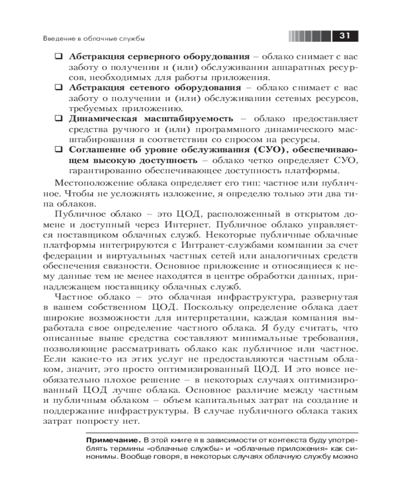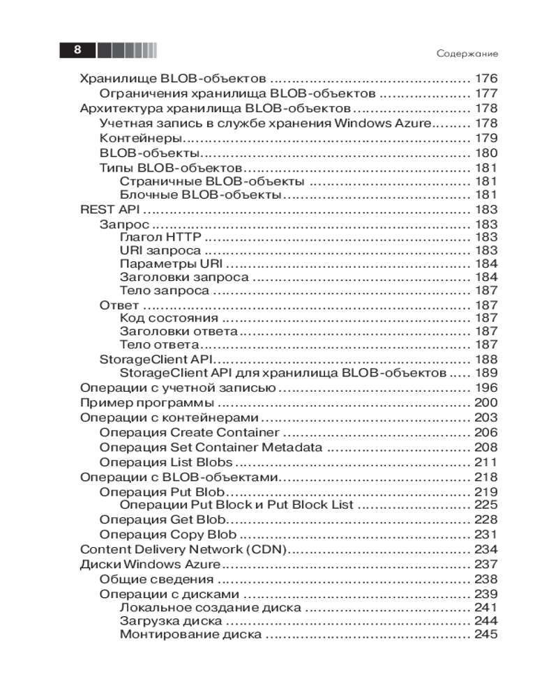 Эта книга посвящена одной из самых развитых современных облачных платформ — Windows Azure. Вы узнаете не только об основных концепциях облачных вычислений, но и на реальных примерах увидите, как можно применить технологию Windows Azure в собственных задачах. Во втором издании рассматриваются такие новые возможности, как доступ к удаленному рабочему столу, кэширование динамического содержимого и безопасная доставка содержимого по SSL-защищенному соединению.