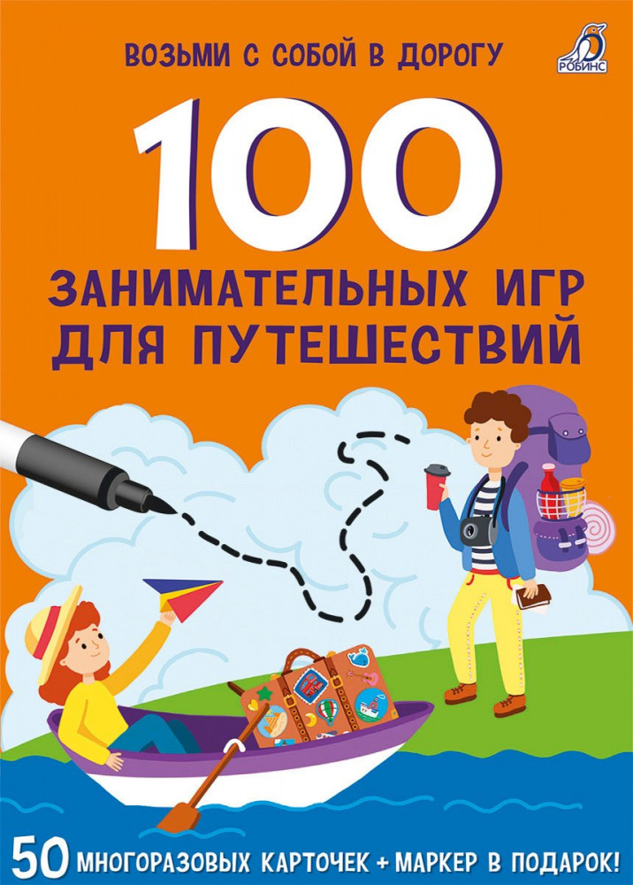 100 занимательных игр для путешествий. 50 многоразовых карточке с маркером-45% +23