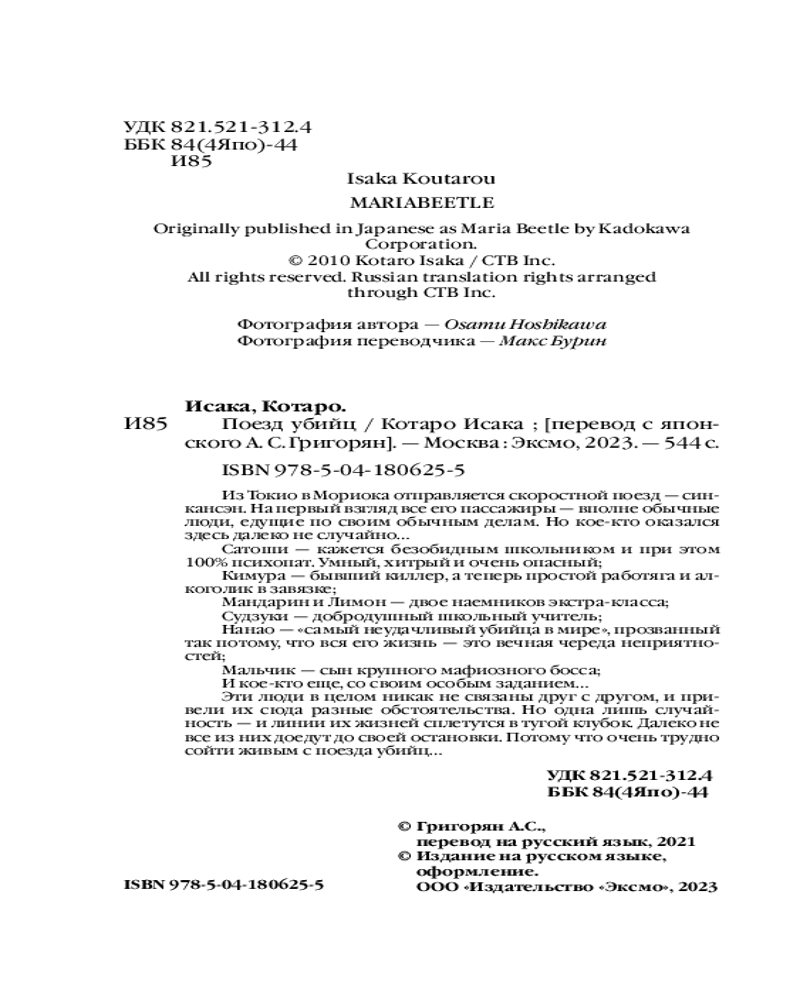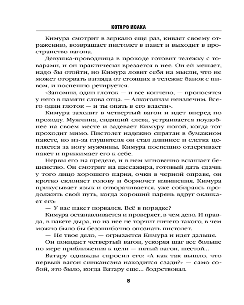 💳 Оплатить за товар можно при получении 🇰🇿 Есть бесплатная доставка по Казахстану от 1 дня 🎁 Копите бонусы с каждой покупки Серия: Tok. Национальный бестселлер. Япония (обложка с клапанами) Из Токио в Мориока отправляется скоростной поезд — синкансэн. На первый взгляд, все его пассажиры — вполне обычные люди, едущие по своим обычным делам. Но кое-кто оказался здесь далеко не случайно... |