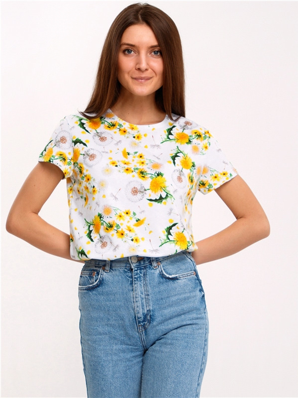 футболка хороша,ткань хлопок не тонкий,плотный, пошив по размерам,длинная,расцветка милая одуванчики на белом фоне и цена доступная! Мне очень понравилась,постирала,не полиняла,сушите лучше на плечиках,в расправленом виде