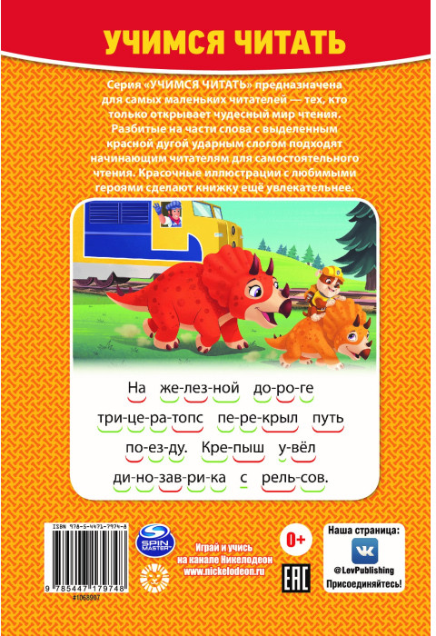 💳 Оплатить за товар можно при получении 🇰🇿 Есть бесплатная доставка по Казахстану от 1 дня 🎁 Копите бонусы с каждой покупки Серия: Учимся читать Серия «Учимся читать» предназначена для самых маленьких читателей — тех, кто только открывает чудесный мир чтения. Разбитые на части слова с выделенным красной дугой ударным слогом подходят начинающим читателям для самостоятельного чтения. Красочные иллюстрации с любимыми героями сделают книжку ещё увлекательнее. |