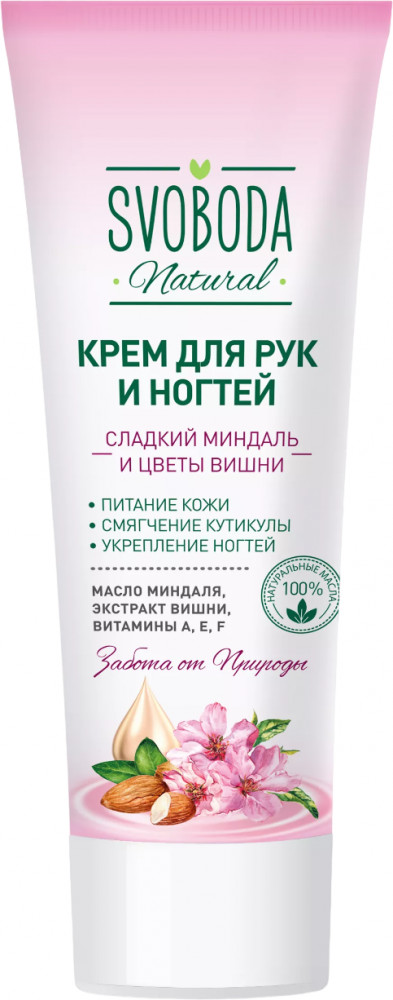 Svoboda Крем для рук и ногтей «Сладкий миндаль и цветы вишни»+27 аромат увлажнение питание гладкость
