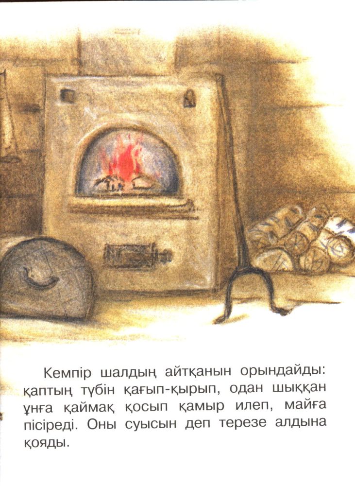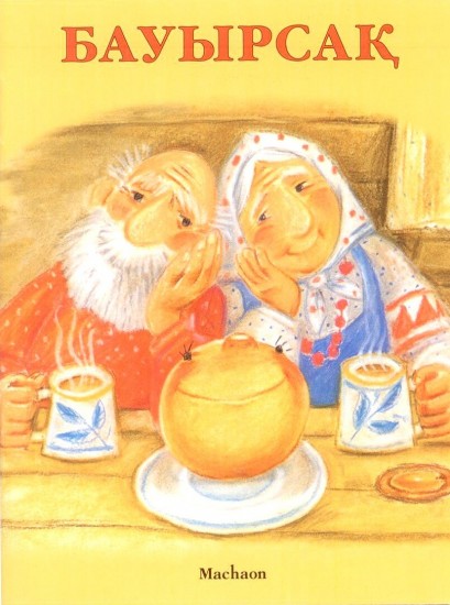 Любопытно было сказку "Колобок" видеть в переводе на казахский язык: Колобок стал Бауырсаком. В целом книжка-малышка оформлена хорошо. Довольно своеобразные иллюстрации. Художник: А.Вронская.