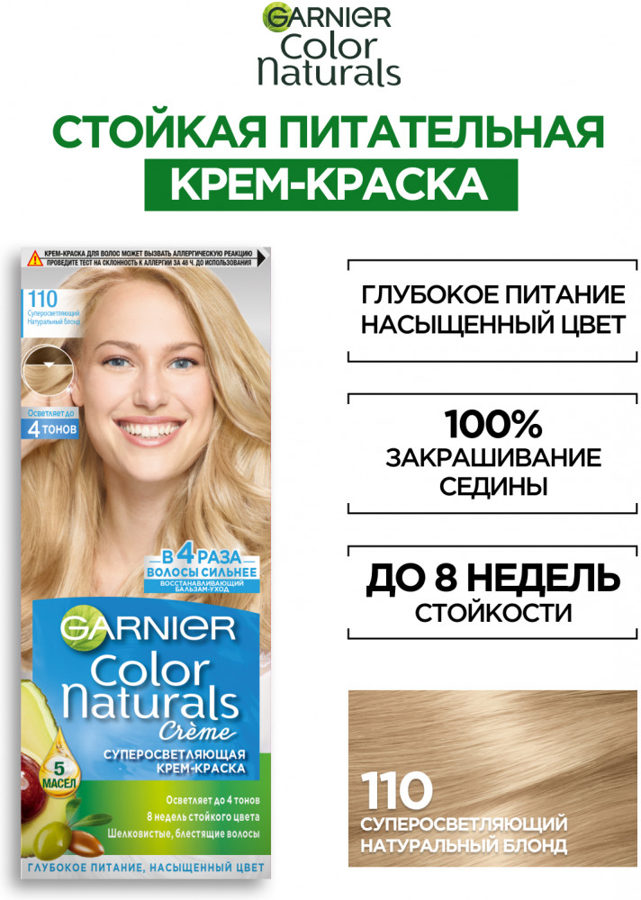 Garnier Суперосветляющая крем-краска для волос «Color Naturals», оттенок 110 Суперосветляющий натуральный блонд