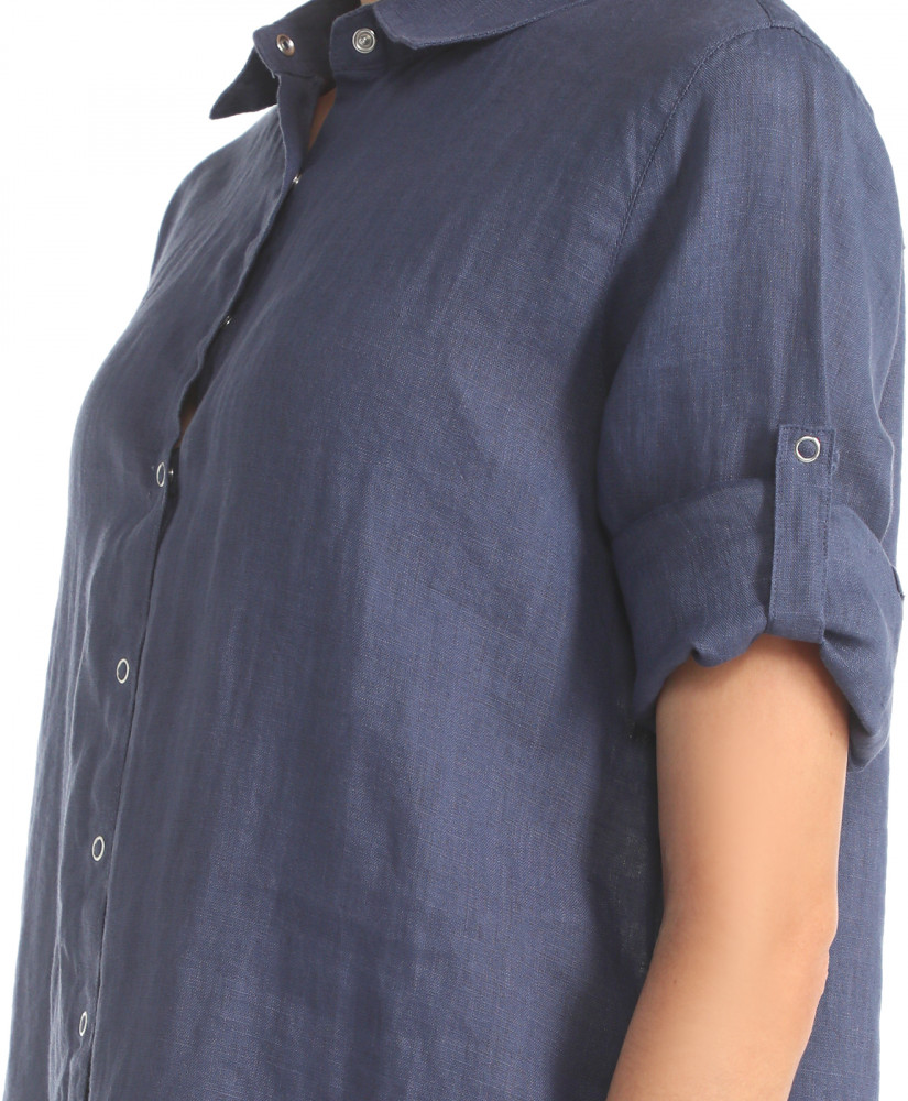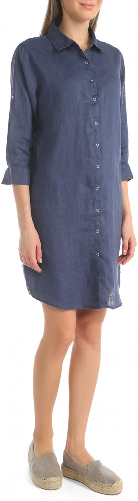 Платье-рубашка свободного прямого кроя на кнопках. Длина выше уровня колен. Длина рукава регулируется патой с застежкой. Носить можно как в сочетании с широким ремнем, так и в виде туники с узкими брюками. Вещь комфортная в носке, с хорошим воздухообменом.