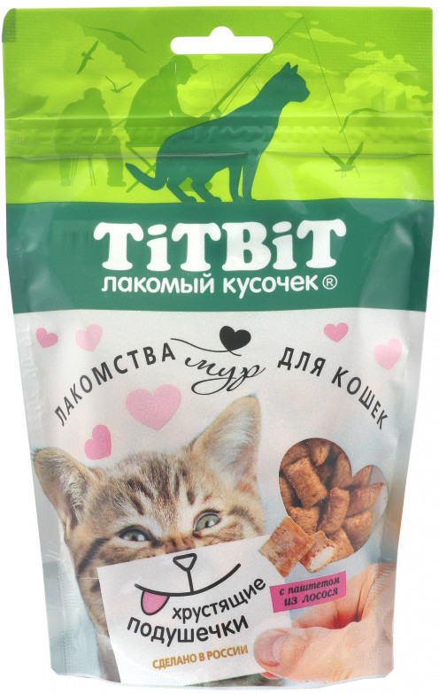 TiTBiT Подушечки для кошек хрустящие с паштетом из лосося