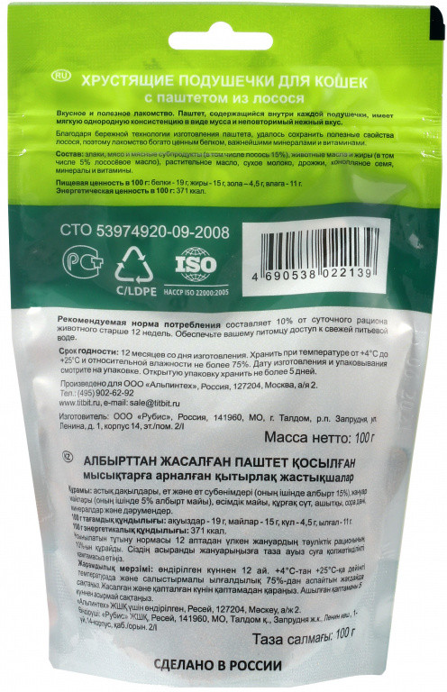 Отзывы «Подушечки для кошек хрустящие с паштетом из лосося»
