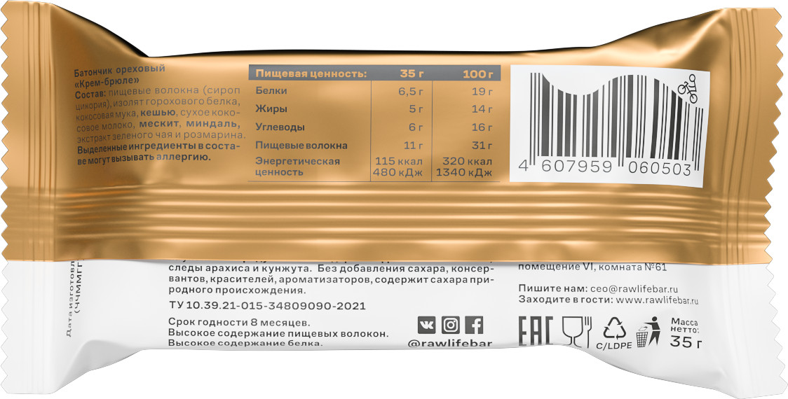 R.A.W. Life Батончик ореховый низкоуглеводный «Крем-брюле»