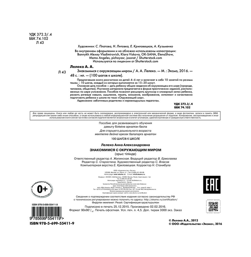 Знакомимся с окружающим миромВ данный момент этот товар отсутствует в продаже. Возможно, у нас найдется аналогичный или похожий товар здесь. Серия: 100 шагов к школе Предлагаемая книга рассчитана на детей 4–6 лет и включает в себя 10 занятий по разным темам — 10 шагов, каждый из которых выполняется за 15–20 минут. |