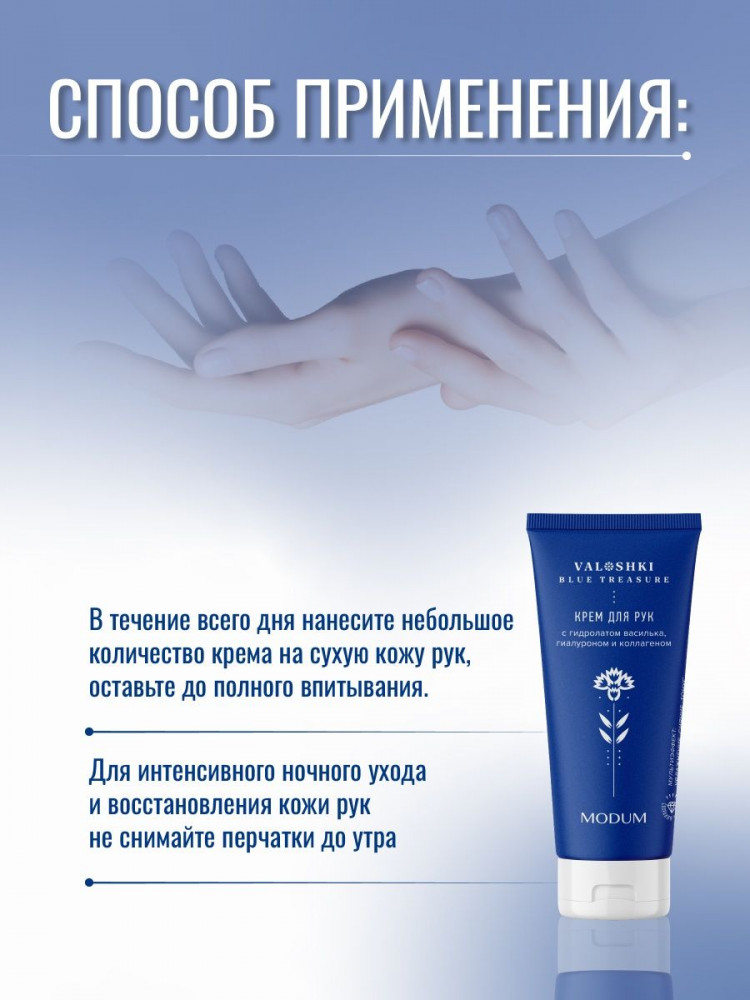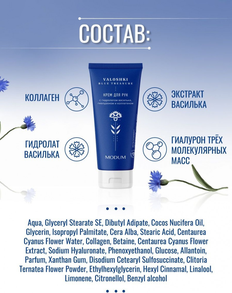 Modum Крем для рук с гидролатом василька, гиалуроном и коллагеном+15