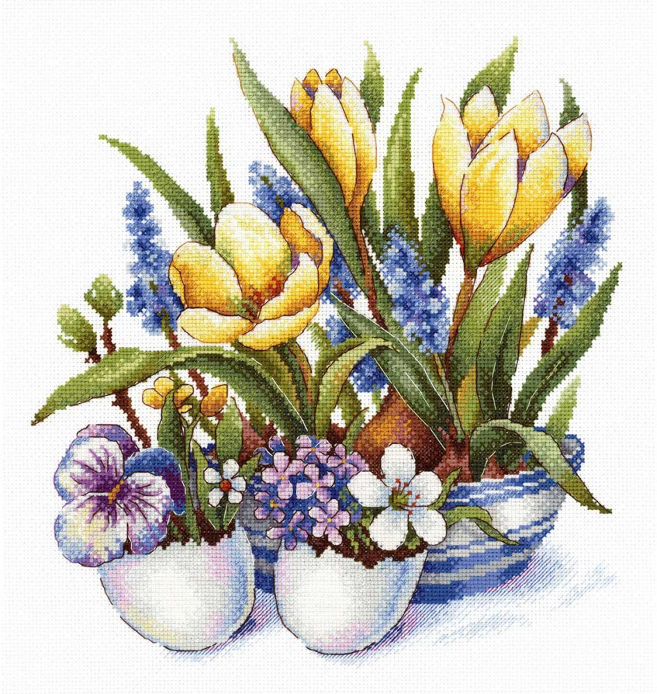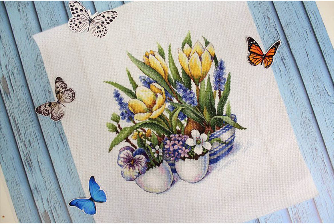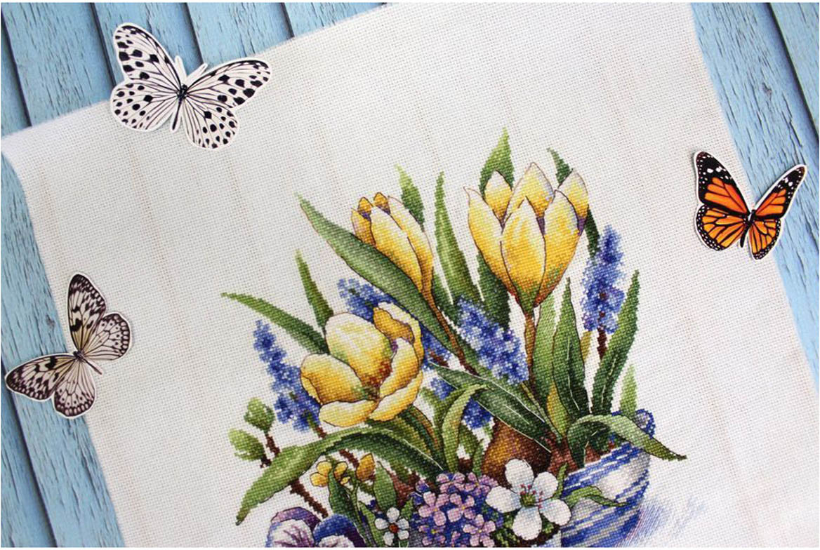 Наборы для вышивания «МП Студия» — это продуманные схемы с тщательно подобранной цветовой палитрой. Картина «Первое дыхание весны» вышивается по канве Aida 16 каунта — этот материал позволяет выкладывать небольшие стежки и прекрасно подходит для схем с подробной детализацией. |