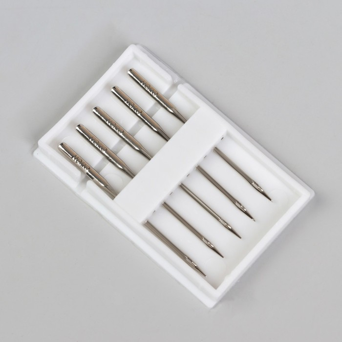 Такая игла подходит для работы с лёгкими эластичными тканями. Благодаря закруглённому кончику она мягко прокалывает ткань, не деформируя её.