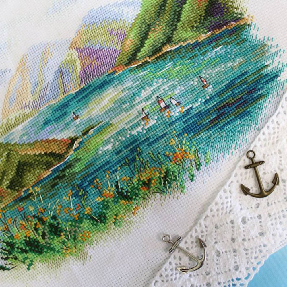Наборы для вышивания «МП Студия» — это продуманные схемы, тщательно подобранная цветовая палитра и материалы российского производства. Сюжет «Озеро Кезенойам» вышивается по канве Aida 14 каунта. Она прекрасно подходит для схем с подробной детализацией, но при этом позволяет выкладывать достаточно крупные стежки. При работе с такой канвой, скорее всего, не потребуется увеличительное стекло. В работе используются разные техники: «крест» позволяет делать цветовое заполнение, стежки «бэкстич» создают четкие контуры, а отдельные штрихи в технике «полукрест» придают изображению динамичность. Готовая картина напоминает рисунок карандашами или акварелью. |