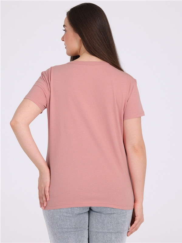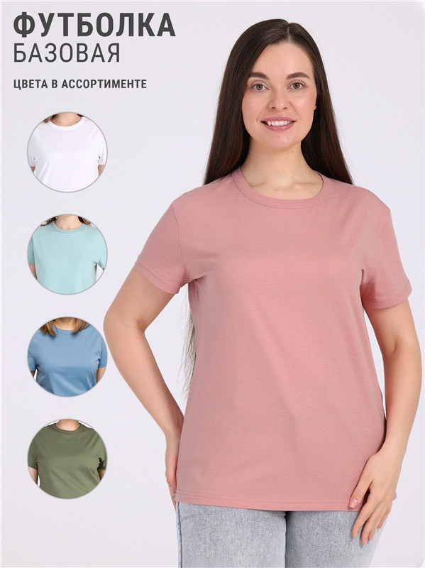 Качественный плотный трикотаж, цвет светло-розовый совпадает с фото. Но большемерит, и на мой рост 170 футболка длинновата