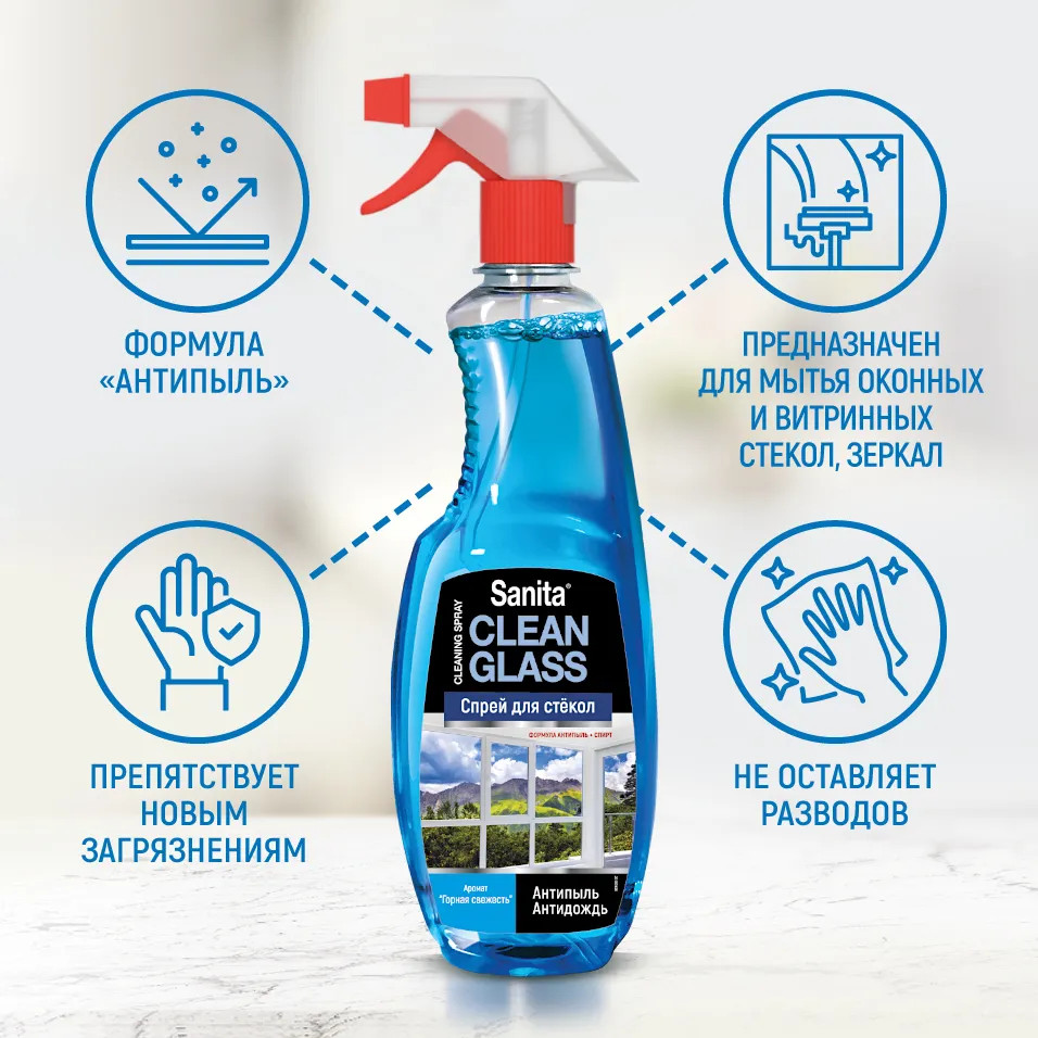 Sanita Средство моющее для стекол и зеркал «Горная свежесть»