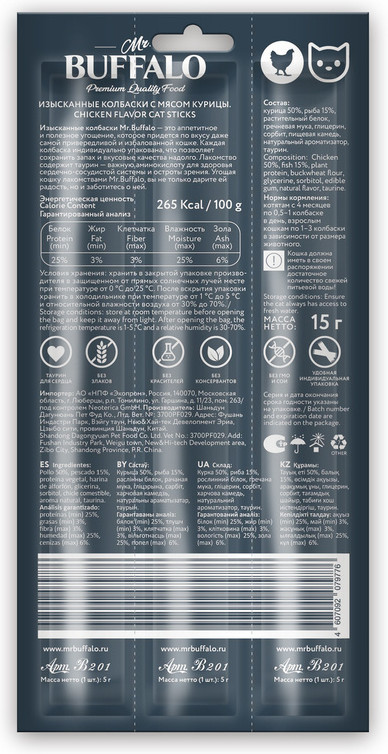 Mr.Buffalo Колбаски для кошек с мясом курицыВ данный момент этот товар отсутствует в продаже. Возможно, у нас найдется аналогичный или похожий товар здесь. Условия хранения товара: температурный режим от -10 до +25°С. |