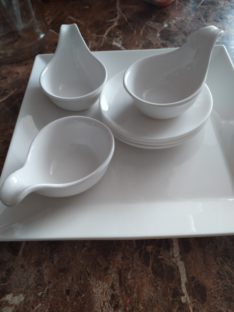 Соусницу побольше объёмом я уже взяла, а такая небольшая чаще даже подойдёт - хоть горчицу, хоть майонез или острые перцовые соусы и т.д.хорошо в такой посуде на стол ставить.