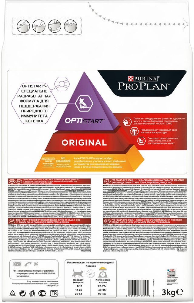 Хочу поделиться впечатлениями о корме для котят Purina Pro Plan. У меня несколько питомцев, очень капризных к еде. Котенку очень трудно подобрать подходящий корм. Котенок сначала немного поиграл с пачкой корма, потом съел его с огромным удовольствием. Состояние его было замечательное, активный, игривый. Вот, что значит достаток витаминов и всех полезных для котят веществ, который содержится в данном корме. Помимо сбалансированного состава корма, имеется удобная для хранения упаковка, которая легко открывается и закрывается при необходимости. Огромное значение для хорошего здоровья имеет правильное питание для котенка в первый год жизни. Именно поэтому я советую всем выбирать корм Purina Pro Plan для котят.