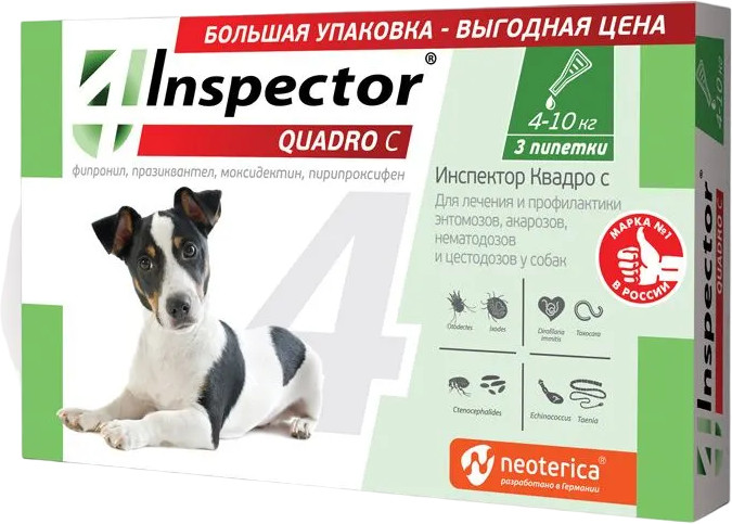 Inspector Капли на холку для собак от паразитов «Quadro С»-20% +368