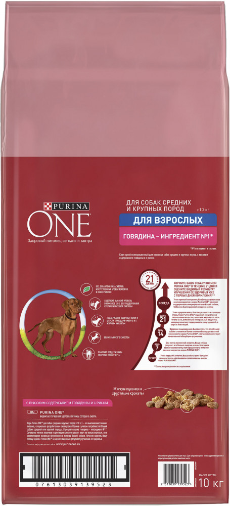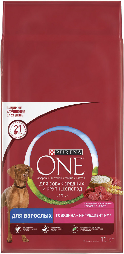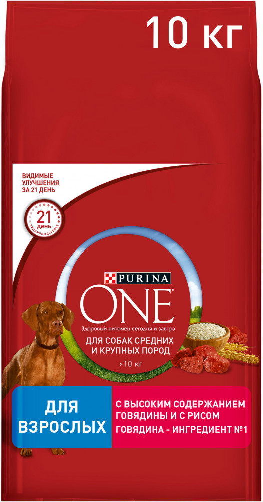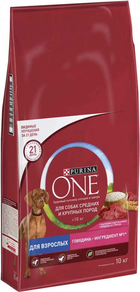 Purina ONE Корм для взрослых собак средних и крупных пород с говядиной и рисом