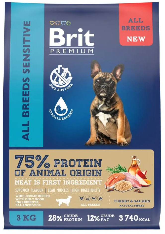 Brit Корм для взрослых собак с чувствительным пищеварением с индейкой и лососем