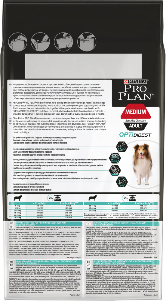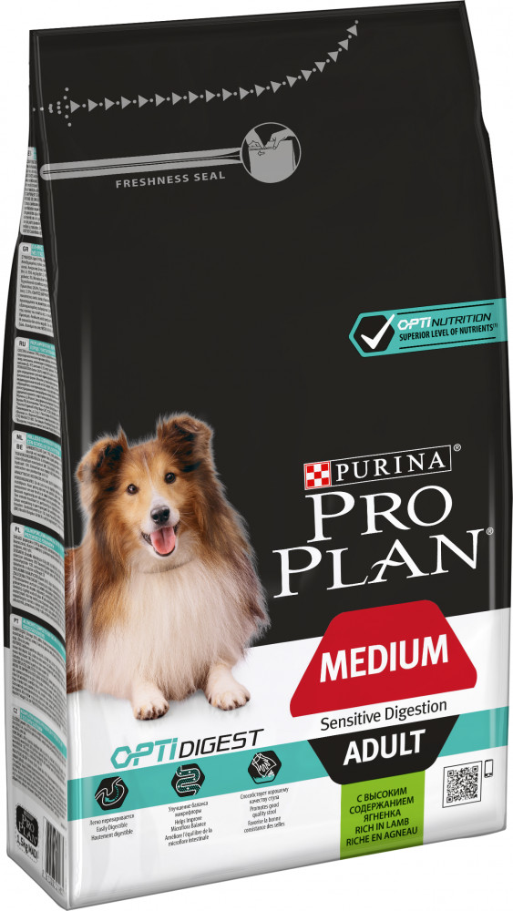 Purina Корм для взрослых собак средних пород с чувствительным пищеварением с ягнёнком