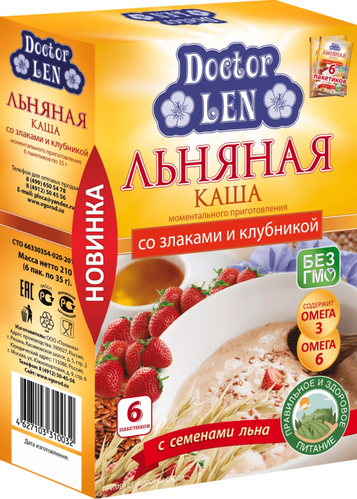 Doctor Len Каша льняная со злаками и клубникой