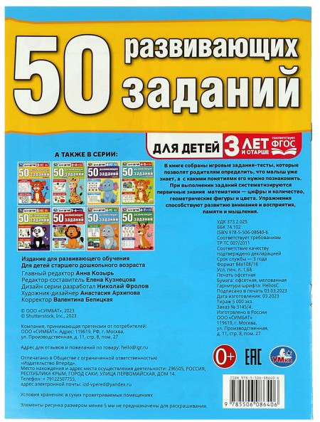 УМка 50 развивающих заданий. Для детей 3 лет и старше-30% +13