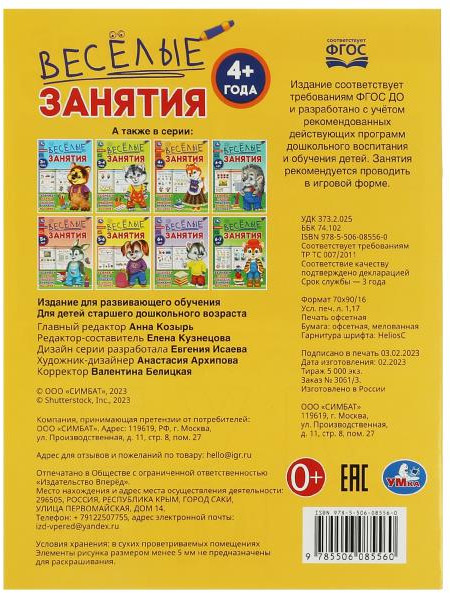 УМка Весёлые занятия. Для детей от 4 лет-30% +3 обложка содержание соответствие возрасту интерес