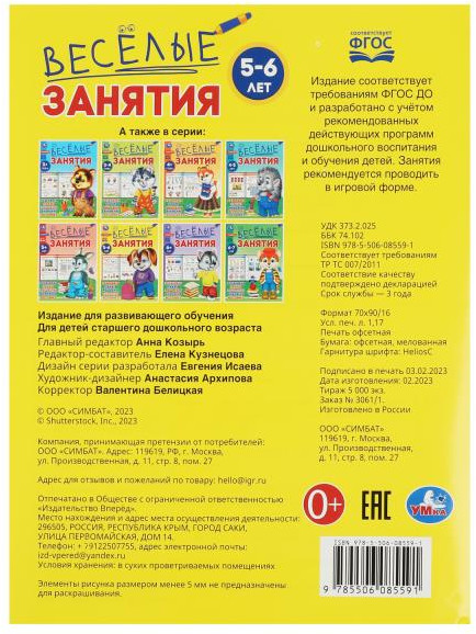 УМка Весёлые занятия. Для детей 5-6 лет-30% +10