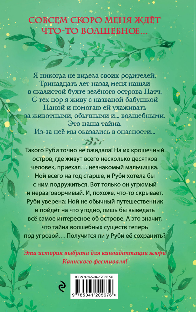 В данный момент этот товар отсутствует в продаже. Возможно, у нас найдется аналогичный или похожий товар здесь. Серия: Руби с волшебного острова Руби никогда не видела родителей. Почти тринадцать лет назад её нашли в скалистой бухте крошечного острова Патч. С тех пор Руби живёт с названой бабушкой Наной и... помогает ей ухаживать за волшебными животными. Но однажды на остров приезжает хмурый мальчишка Ной. И, похоже, он хочет выведать все тайны острова. Теперь волшебные существа в опасности! Получится ли у Руби их защитить?
