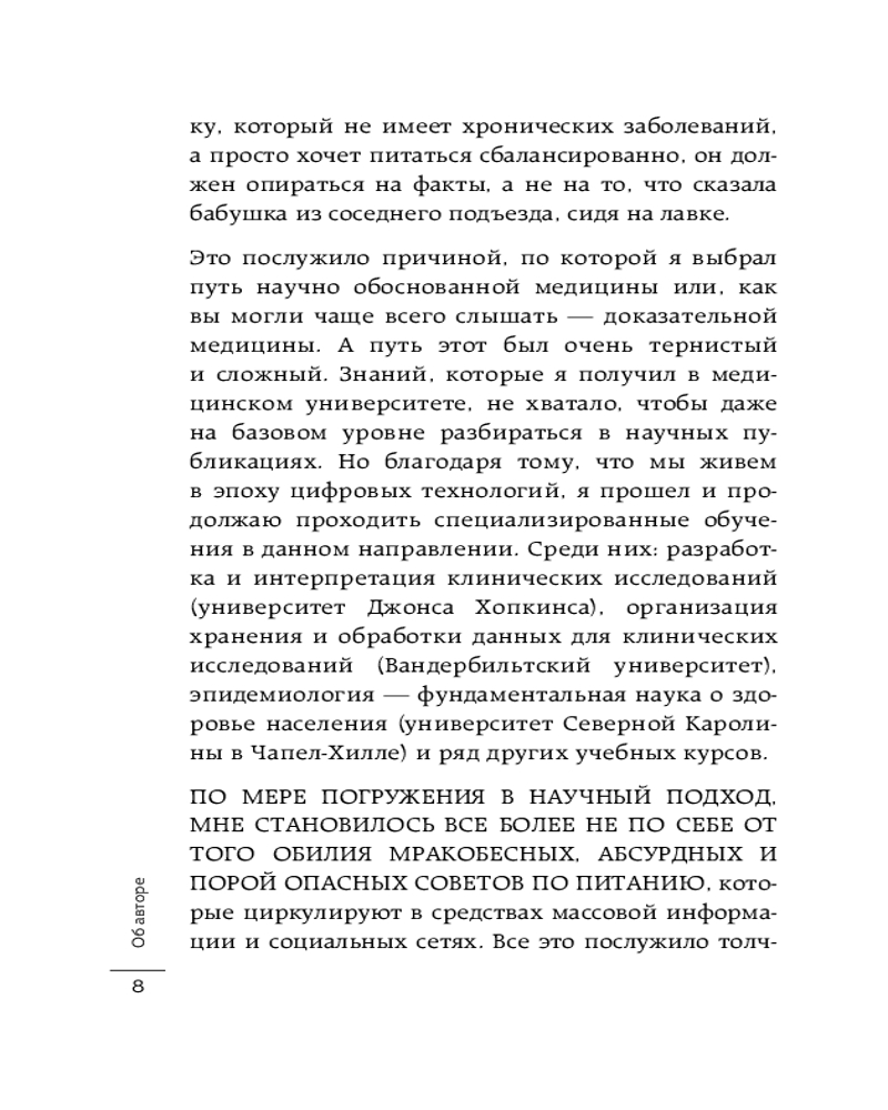 Автор книги, Александр Бурлаков, врач-диетолог, автор медицинского блога @dr.burlakov и cооснователь образовательного центра в области фитнеса и медицины Body Coach, рассматривает рацион с точки зрения доказательной медицины и современной науки.