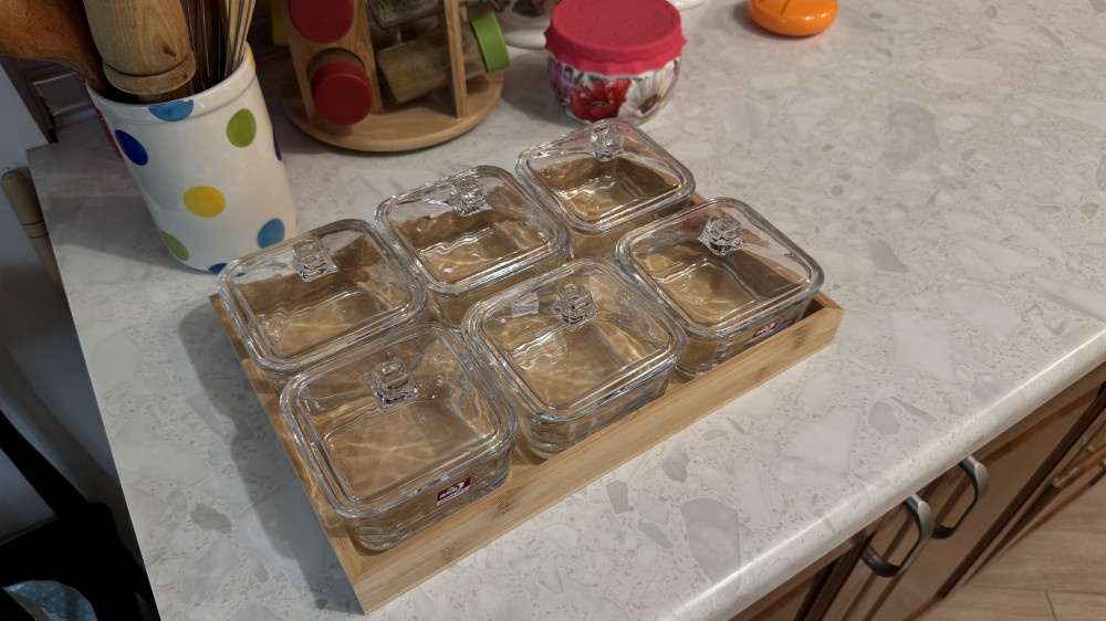 Менажница- супер, красивая, практичная, вместительная, понравилось, что с крышечками!