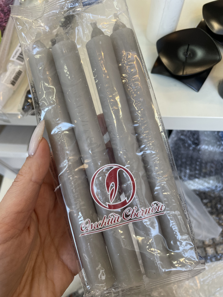 Свечи оказались серые по цвету и узковатые для подсвечников, которые приобрела здесь же.