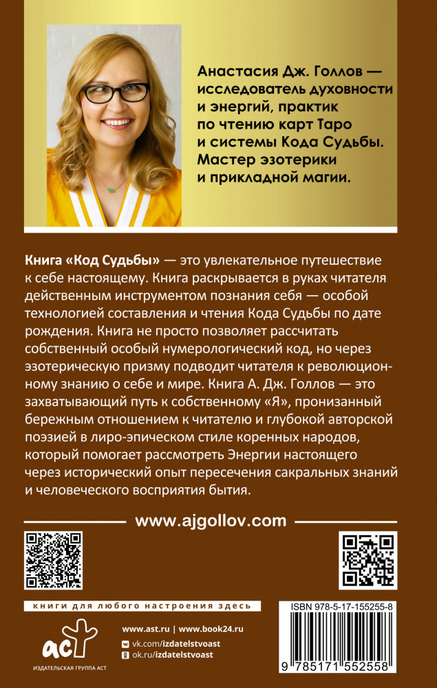 💳 Оплатить за товар можно при получении 🇰🇿 Есть бесплатная доставка по Казахстану от 1 дня 🎁 Копите бонусы с каждой покупки Серия: Нонфикшн. Тайны знания Анастасия Дж. Голлов — исследователь духовности и энергий, практик по чтению карт Таро и системы Кода Судьбы. Мастер эзотерики и прикладной магии. |