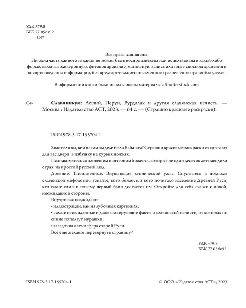 💳 Оплатить за товар можно при получении 🇰🇿 Есть бесплатная доставка по Казахстану от 1 дня 🎁 Копите бонусы с каждой покупки Серия: Страшно красивые раскраски Знаете ли вы, кем на самом деле была Баба Яга? Страшно красивые раскраски открывают для вас двери в избушку на курьих ножках. |