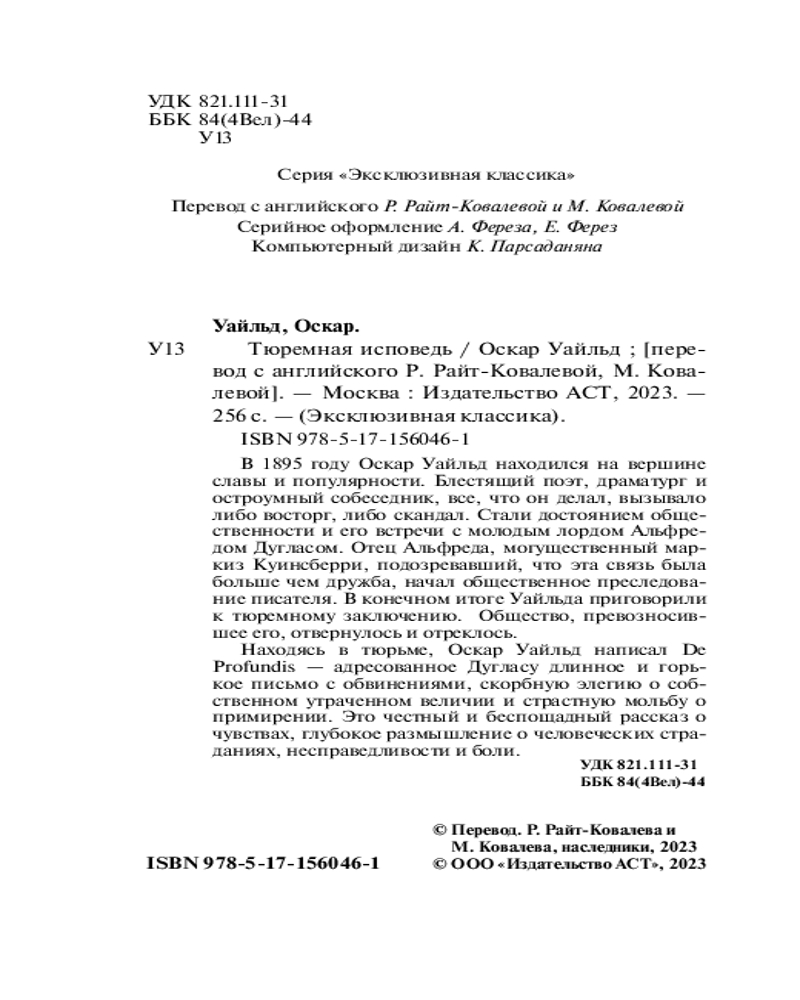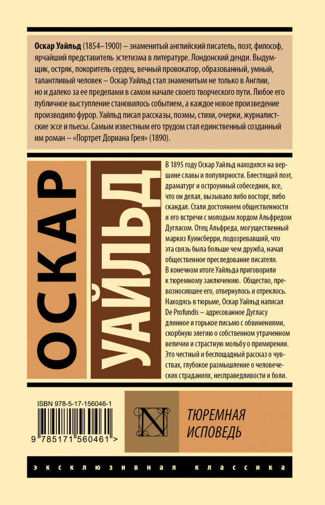 Тюремная исповедьВ данный момент этот товар отсутствует в продаже. Возможно, у нас найдется аналогичный или похожий товар здесь. Серия: Эксклюзивная классика (Лучшее) В 1895 году Оскар Уайльд находился на вершине славы и популярности. Блестящий поэт, драматург и остроумный собеседник, все, что он делал, вызывало либо восторг, либо скандал. Стали достоянием общественности и его встречи с молодым лордом Альфредом Дугласом. Отец Альфреда, могущественный маркиз Куинсберри, подозревавший, что эта связь была больше чем дружба, начал общественное преследование писателя. В конечном итоге Уайльда приговорили к тюремному заключению. Общество, превозносившее его, отвернулось и отреклось. |