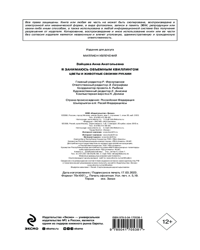 💳 Оплатить за товар можно при получении 🇰🇿 Есть бесплатная доставка по Казахстану от 1 дня 🎁 Копите бонусы с каждой покупки Серия: Миллион увлечений Что вы представляете себе, когда слышите слово «квиллинг»? Наверняка в воображении у вас всплывают разноцветные витиеватые композиции, приклеенные к листу бумаги. Они отлично смотрятся на открытках или в рамочке. А что, если окажется, что вещицам из бумажных завитков можно найти и практическое применение? |