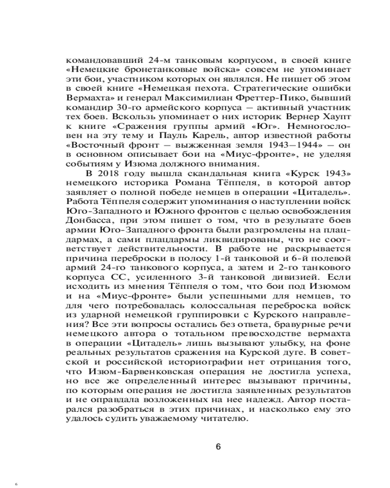 💳 Оплатить за товар можно при получении 🇰🇿 Есть бесплатная доставка по Казахстану от 1 дня 🎁 Копите бонусы с каждой покупки Серия: Курская битва. К 80-летию величайшего сражения Изюм-Барвенковскую операцию июля 1943 года принято считать неудачей Красной Армии. Однако в тени обычно остается тот факт, что хотя прорвать оборону Вермахта войскам Юго-Западного фронта так и не удалось, но наступательные действия и серьезные потери противника стали одной из причин прекращения немецким командованием операции «Цитадель». Автор этой книги, на основе архивных документов, предлагает новаторскую гипотезу — события на Южном фасе Курской дуги по отражению немецкого танкового удара в рамках «Цитадели» стали лишь частью общего замысла советского командования, основной задачей которого было остановить наступление группы армий «Юг» на Курск и, «вытянув» на себя, связать боем все танковые резервы гитлеровцев на южном участке Советско-германского фронта. Эти решительные действия должны были помочь Юго-Западному и Южному фронтам выполнить основной замысел Ставки ВГК — освободить Донбасса. В необычном ракурсе на станицах этой книги предстает и Адольф Гитлер — «бесноватый фюрер» оказался прозорливее «непобедимого» генерал-фельдмаршала Эриха фон Манштейна и не только удержал Донбасс, но и, правильно прочувствовав пульс сражения, без преувеличения спас 6-ю полевую армию нового формирования от очередного страшного разгрома, сравнимого по масштабом со Сталинградом. |